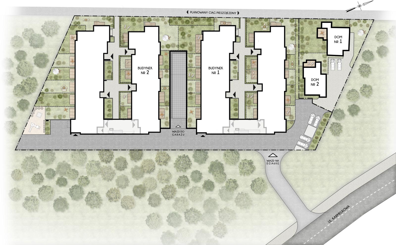 Odkryj Osiedle Karmelkowa – nowoczesną enklawę w willowej części Wrocławia. Projekt wyróżnia się kameralną, niską zabudową, którą tworzą dwa budynki wielorodzinne oraz dwie eleganckie wille miejskie. Taki układ zapewnia mieszkańcom wyjątkową prywatność oraz kameralną, sąsiedzką atmosferę.